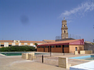 La Piscina Municipal «El Jardín», se encuentra ubicada en lo que fueran los Jardines de la Casa de Verano del Marqués de Caro, en los terrenos donados por los herederos del mismo al Ayuntamiento de nuestra localidad. Para ser más exactos, aprovecha el hueco de las antiguas bodegas de esta residencia de verano, que se derribó tras permacer varias décadas abandonada a finales de los años 70.