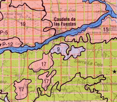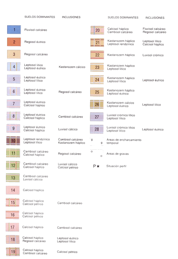 Esta irregularidad en la red de drenaje es debida al acusado estiaje que se produce en los meses de verano, que deja completamente secos la mayoría de los cauces de arroyada de toda la comarca, y que contrasta con las fuertes y súbitas crecidas de las estaciones intermedias, provocadas por las fuertes tormentas, que pueden llegar a ocasionar pequeñas inundaciones.Mapa de Suelos